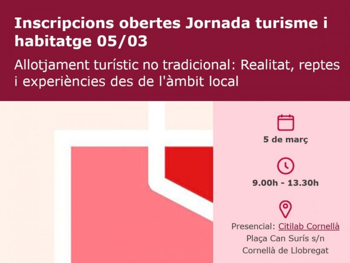 Jornada tècnica on es tractarà quina és la realitat i els reptes de l'allotjament turístic no tradicional a les comarques de Barcelona. Es farà una ponència marc sobre el context i l'actualitat d'aquest fenomen, es presentarà l'anàlisi del sector elaborada pel Laboratori de Turisme i se celebraran dues taules rodones amb representants públics locals i experts del sector per abordar els reptes en aquest àmbit.