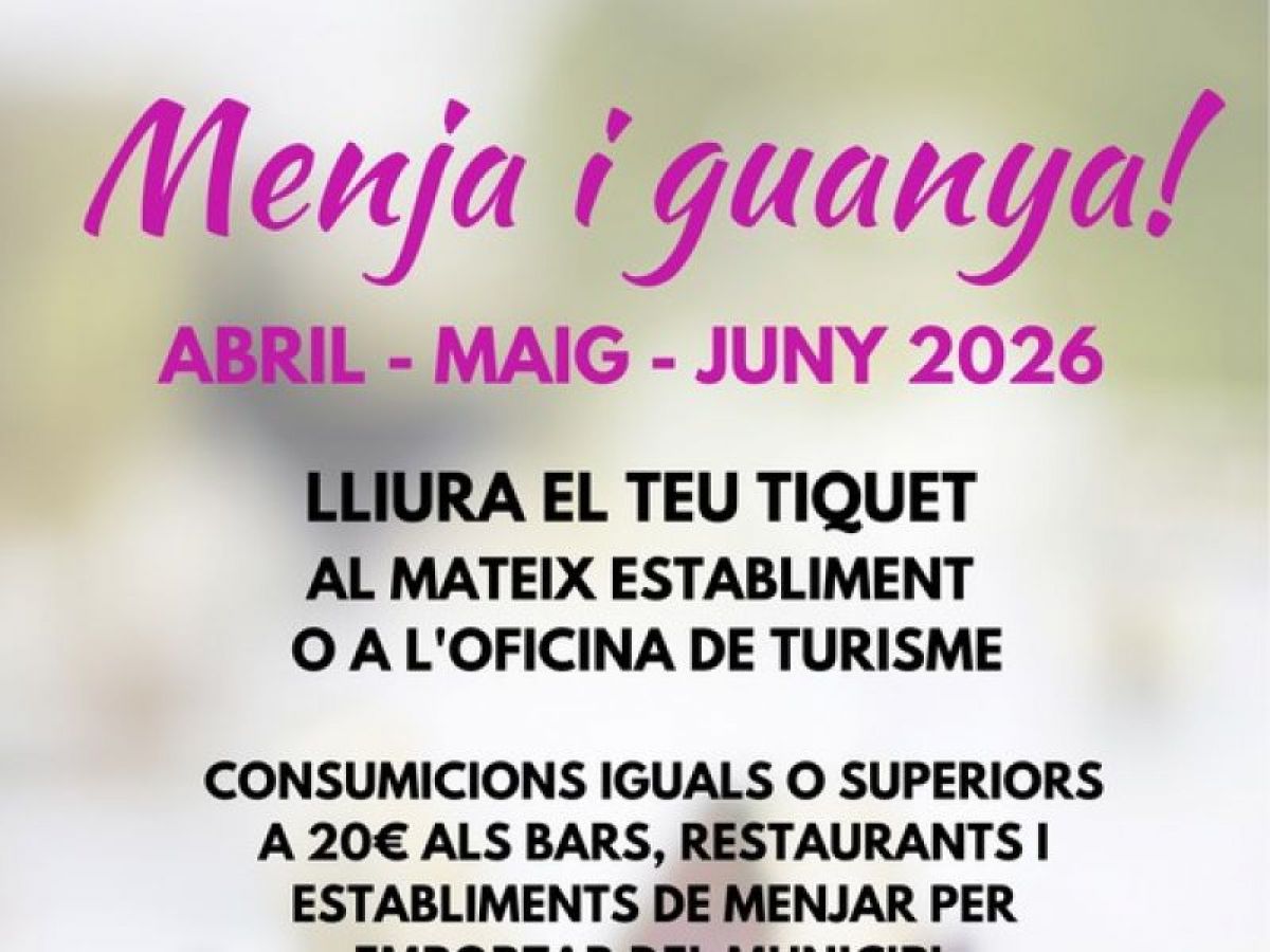 Per promoure el consum als establiments de restauració del municipi de Vandellòs i l’Hospitalet de l’Infant i fomentar-hi l’activitat econòmica durant els mesos d’abril, maig i juny, la Regidoria de Turisme ha posat en marxa novament la campanya promocional “Menja i guanya!”. D’aquesta manera, els clients i clientes que facin consumicions iguals o superiors a 20 euros a qualsevol dels 17 bars, restaurants o establiments de menjar per emportar adherits a la campanya podran participar en el sorteig d’un lot de productes locals.