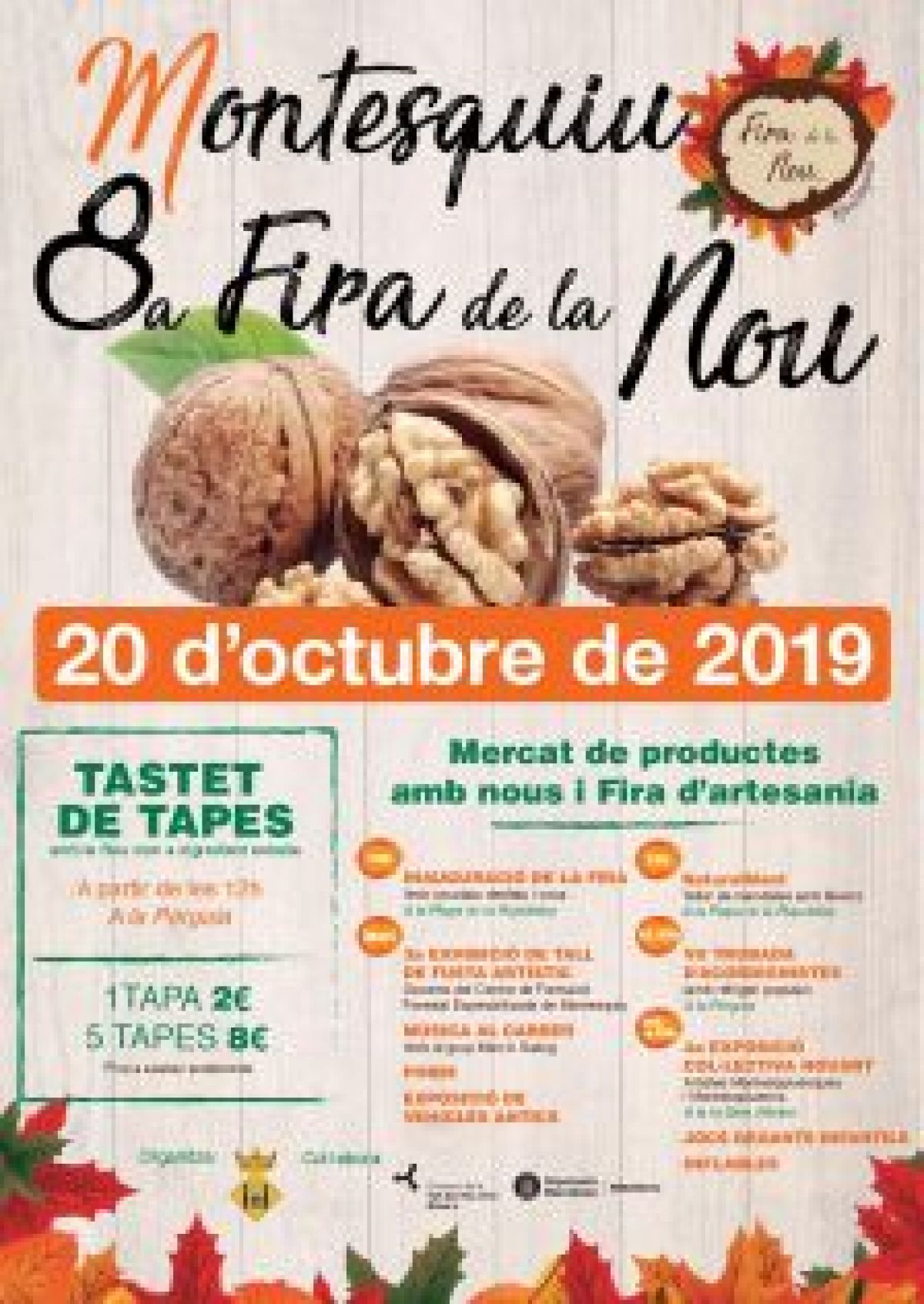 El dia 20 d’octubre tindrà lloc una nova edició de la Fira de la Nou de Montesquiu, amb diferents propostes relacionades amb aquest fruit de temporada. El diumenge a partir de les 12 del migdia tindrà lloc la novetat d’enguany, el Tastet de tapes.