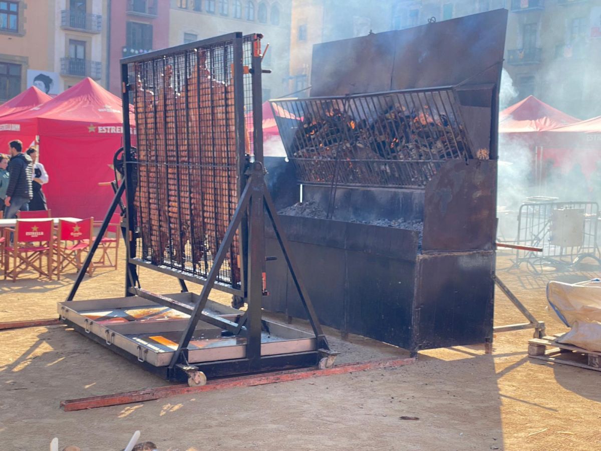 A partir de primera hora del matí ja s’han començat a servir els primers entrepans de botifarra, cansalada i botifarra negra; i al migdia s’hi afegiran els de porc rostit Ral d’Avinyó, dels dos exemplars que s’han estat rostint al mig de la plaça durant tota la nit .