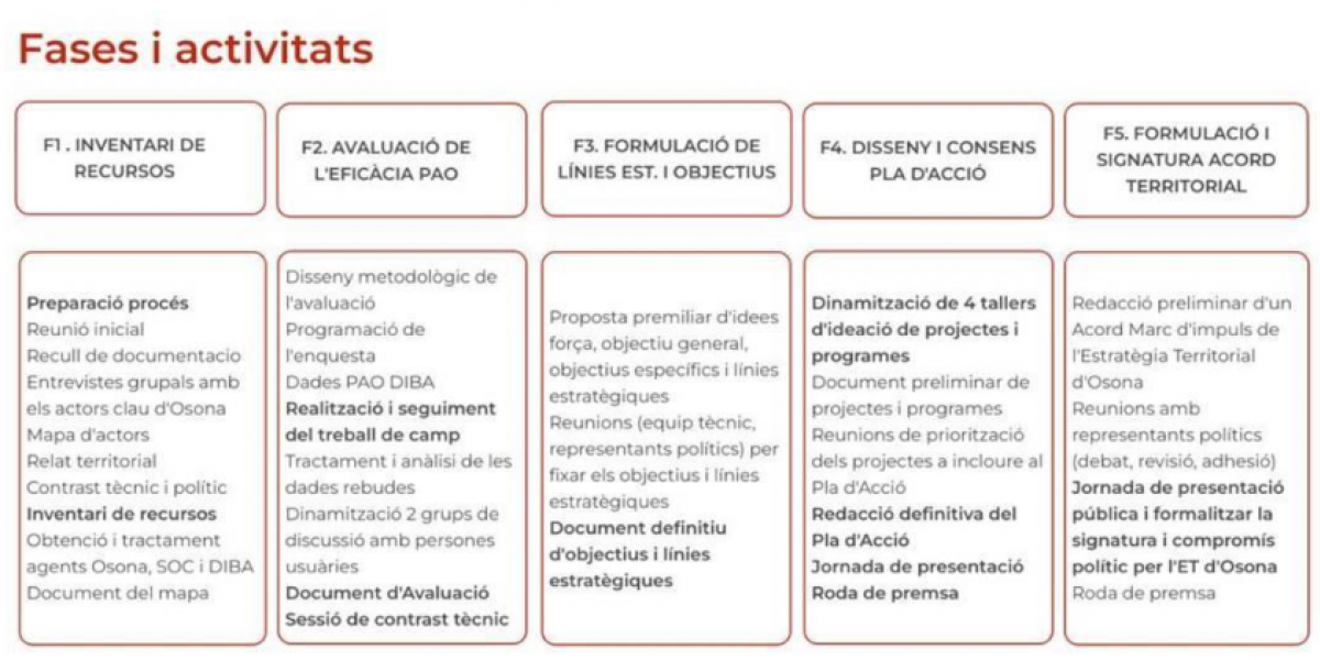 El projecte, consta de vàries fases, que ja s’han executat, com l’elaboració d’un inventari de recursos de la comarca. També s'han recollit dades a través de la base XALOC de la Diputació de Barcelona, que facilita la connexió entre demandants d'ocupació i empreses i s’han realitzat vàries reunions de treball.